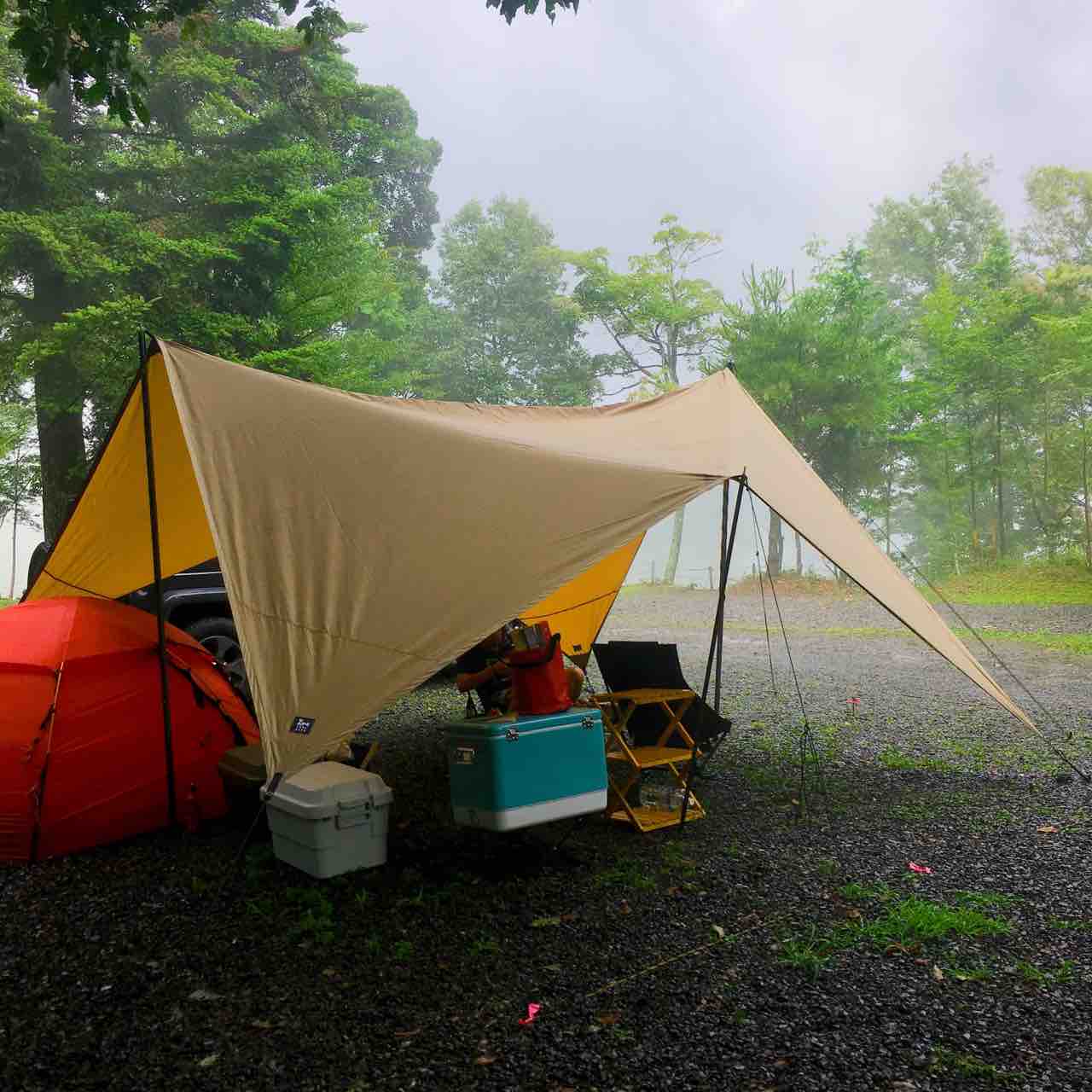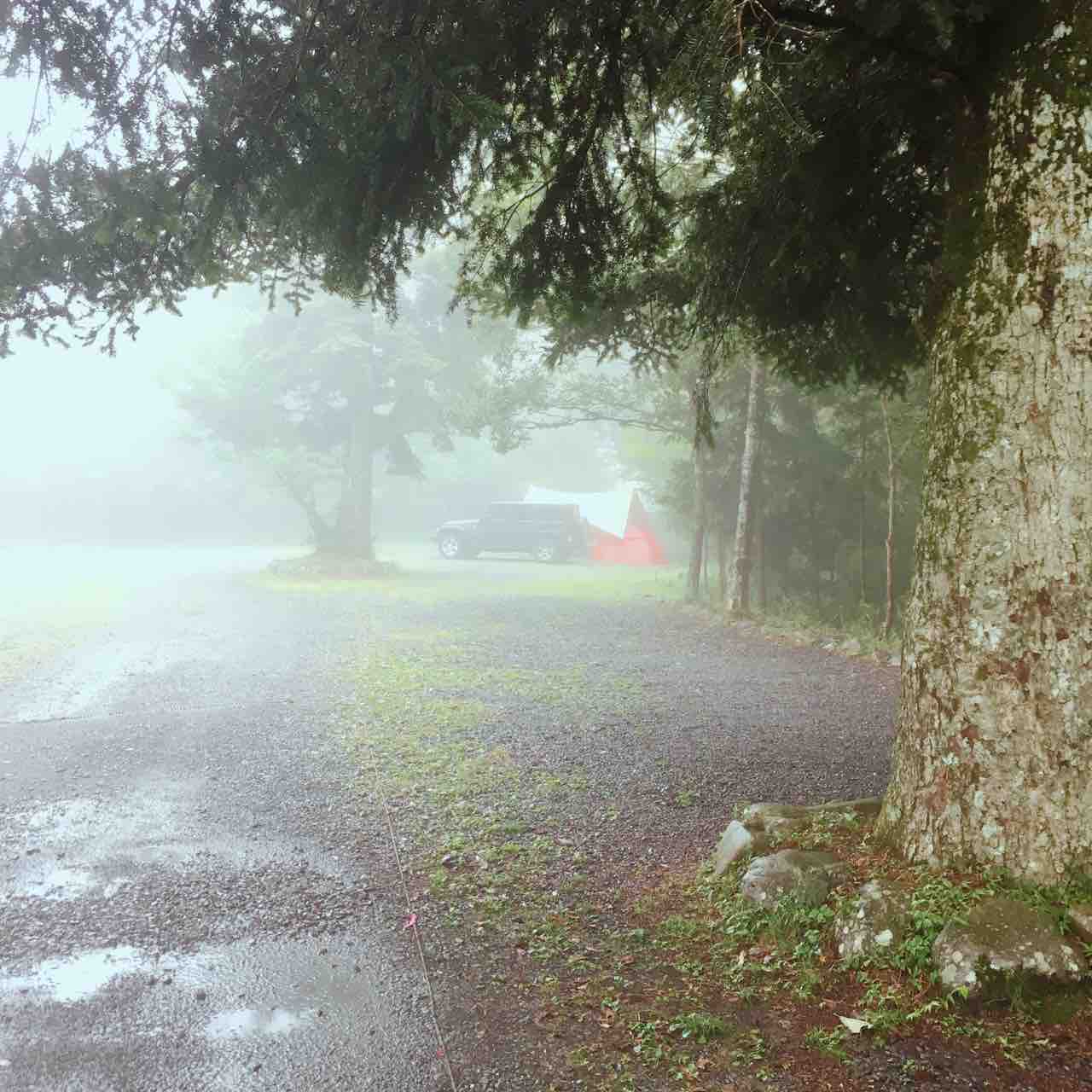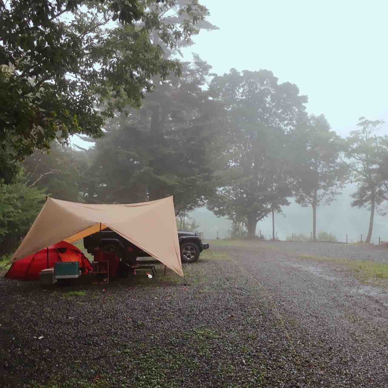 設営〜霧中キャンピング